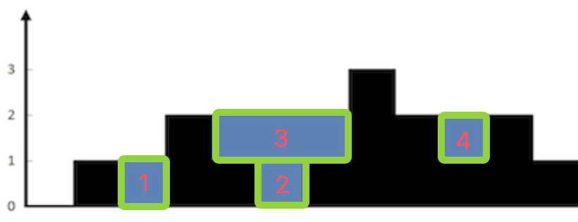单调栈的雨水计算方法和前面两种不同,单调栈是横向计算,每次计算一层或多层组成的矩形面积。